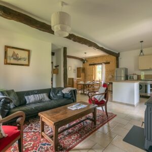 Im hinteren Bereich des Anwesens, im Obergeschoss der ehemaligen Steinscheune, liegt Le Bois, ein charmantes Ferienhaus in der Dordogne, das besonders für seine außergewöhnliche Ruhe und naturnahe Lage geschätzt wird. Geschützt vor Blicken durch den steinernen Turm mit traditionellem Lauzendach sowie den alten Unterstand, bietet dieses Gîte eine diskrete und entspannende Atmosphäre, ideal für Gäste, die Erholung suchen.